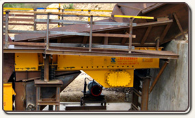 振動給料機(jī)在工作過程中可把塊狀、顆粒狀物料從貯料倉中均勻、定時、連續(xù)地送入受料裝置,在砂石生產(chǎn)線中可為破碎機(jī)械連續(xù)均勻地喂料,并對物料進(jìn)行粗篩分。
